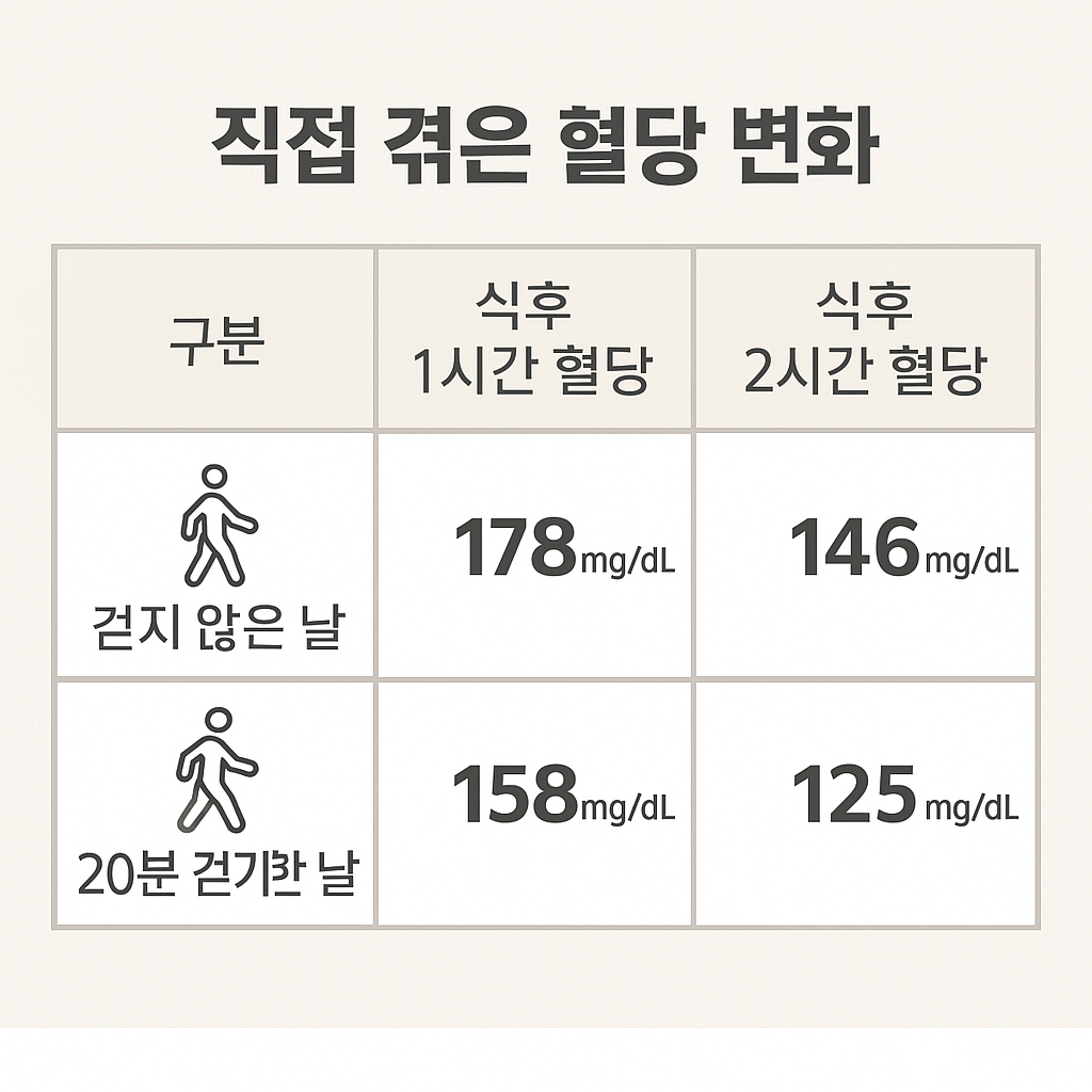 즉, 걷기는 단순한 유산소 운동이 아니라 ‘식후 혈당 조절을 위한 실질적인 치료 도구’라는 걸 알게 됐어요.